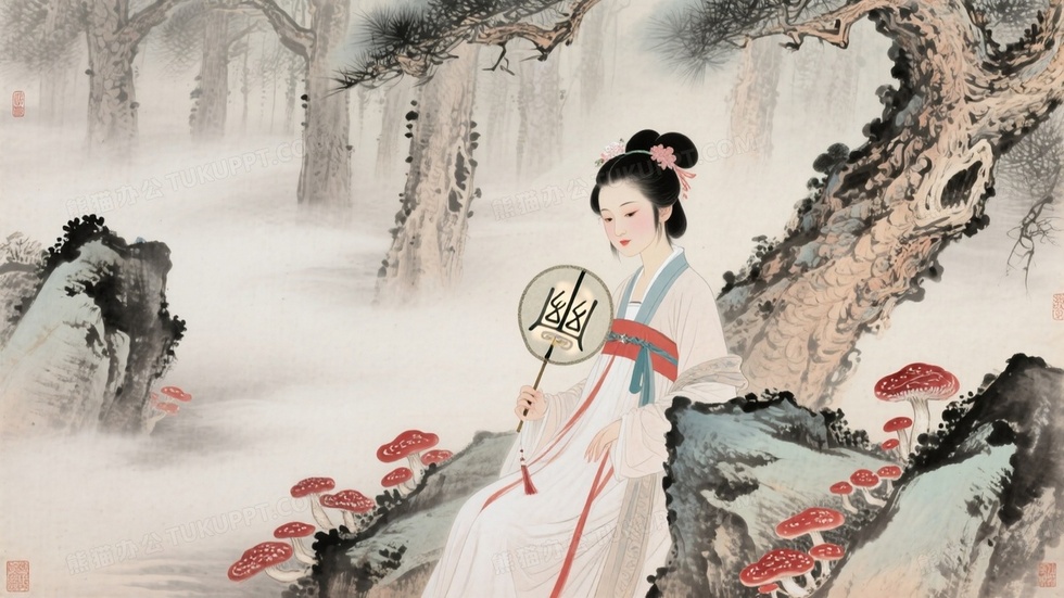 本作品内容为绢本设色水墨森林汉服少女执团扇倚坐卧龙松, 格式为 jpg, 大小1 MB, 图片尺寸为1664 x 936, 源文件无水印, 欢迎使用熊猫办公。 如认为平台内容涉嫌侵权,可通过邮件:tousu@tukuppt.com提出书面通知,我们将及时处理。