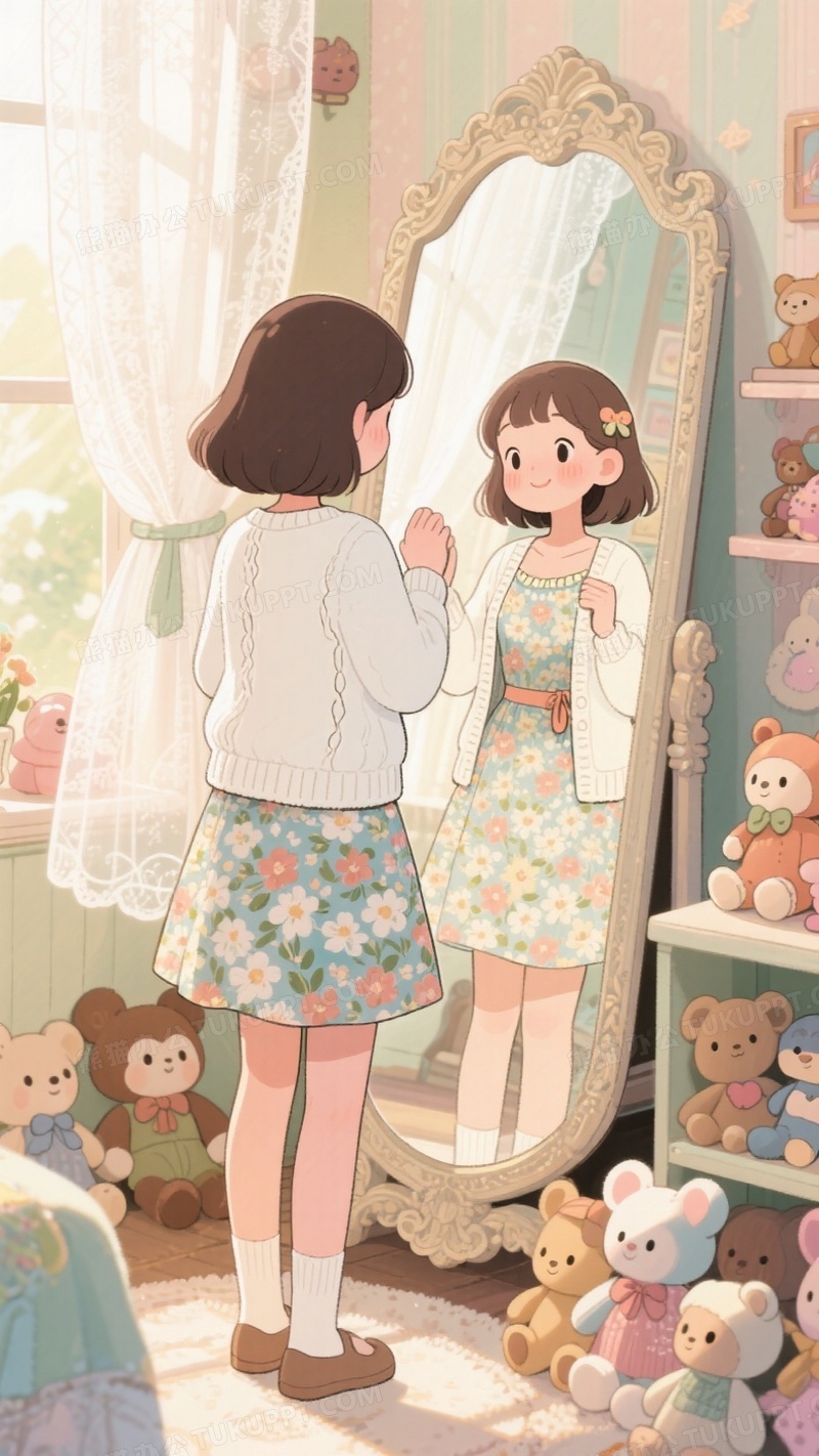 本作品内容为可爱风卡通插画女孩身着碎花短裙配白色针织开衫, 格式为 jpg, 大小1 MB, 图片尺寸为936 x 1664, 源文件无水印, 欢迎使用熊猫办公。 如认为平台内容涉嫌侵权,可通过邮件:tousu@tukuppt.com提出书面通知,我们将及时处理。