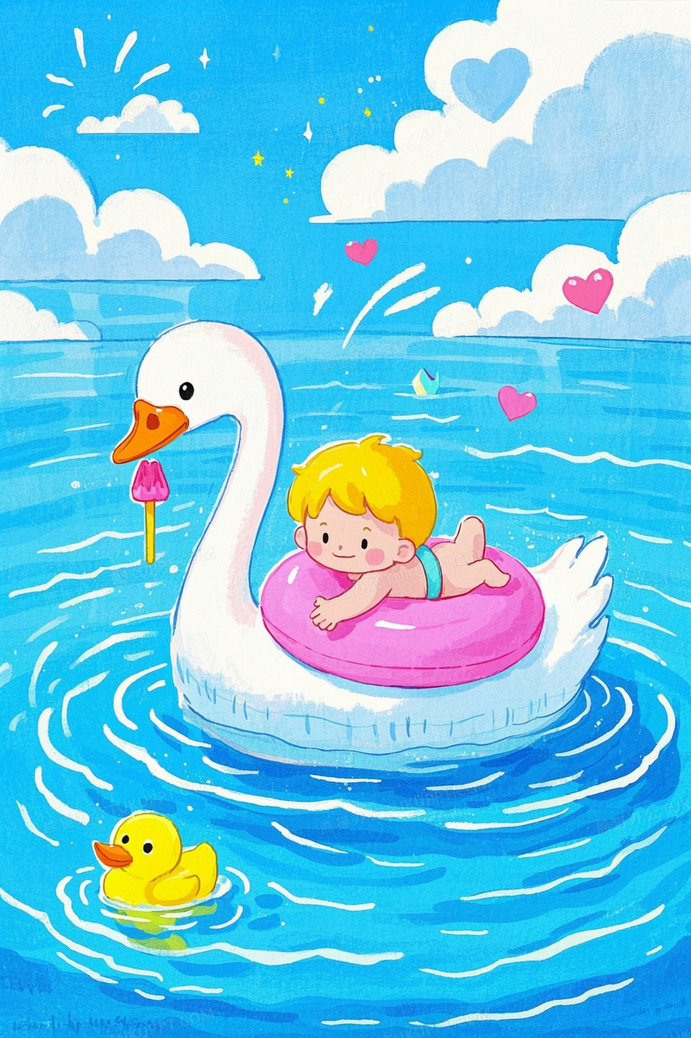 本作品内容为卡通化儿童趴在天鹅游泳圈上舔冰淇淋, 格式为 jpg, 大小3 MB, 图片尺寸为2728 x 4096, 源文件无水印, 欢迎使用熊猫办公。 如认为平台内容涉嫌侵权,可通过邮件:tousu@tukuppt.com提出书面通知,我们将及时处理。