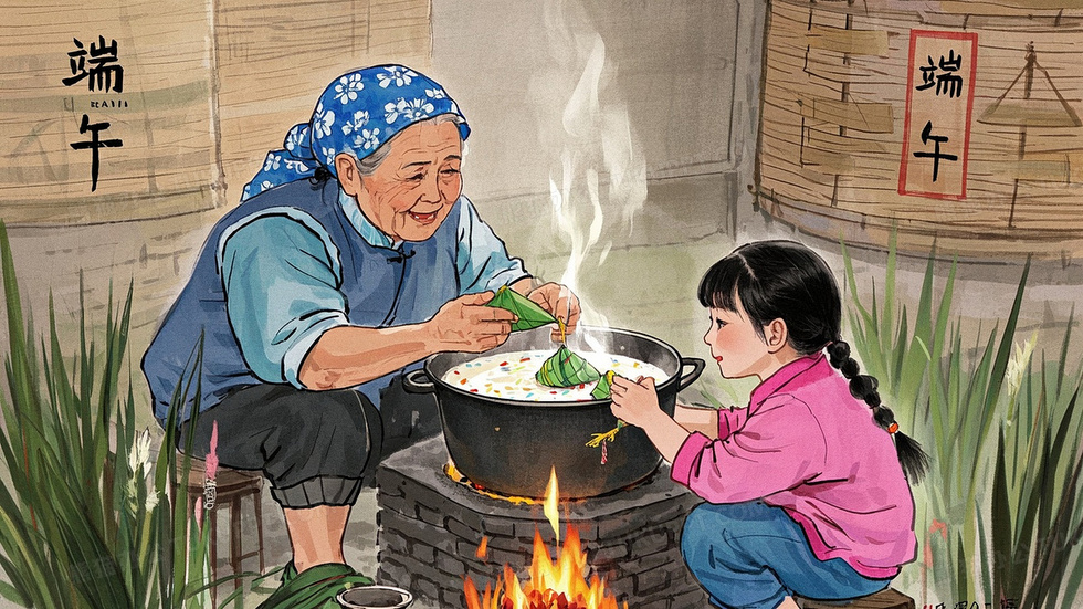 首页 > 插画 > 科技艺术 > 其他 > 怀旧风格端午插画祖孙围坐老灶台