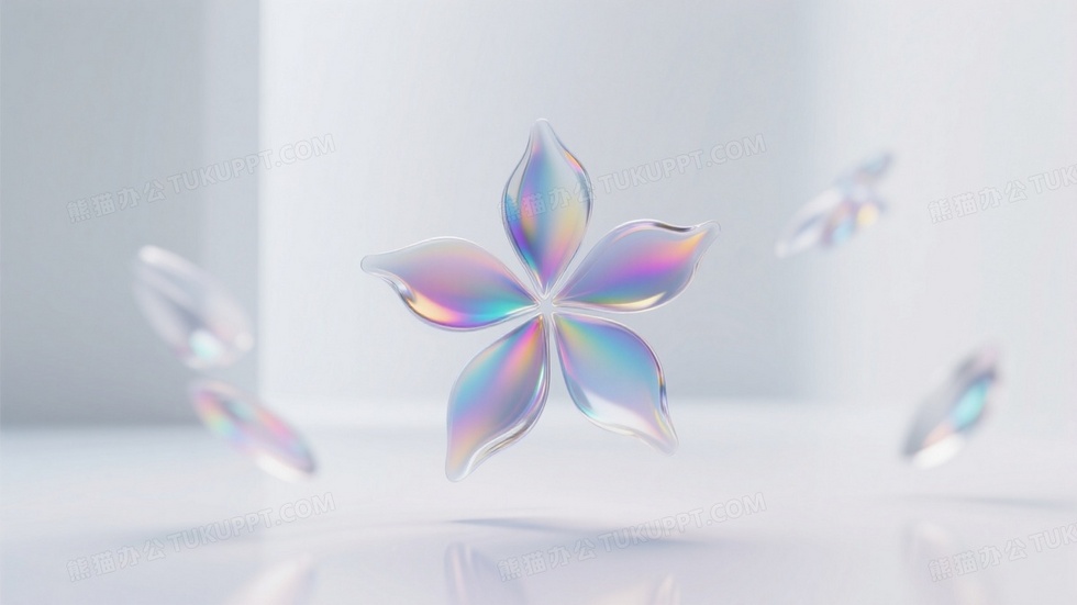 本作品内容为3D渲染抽象艺术五片琉璃材质花瓣在乳白空间悬浮翻转, 格式为 jpg, 大小1 MB, 图片尺寸为1664 x 936, 作品中背景图片无需修改, 源文件无水印,可以直接使用, 欢迎使用熊猫办公。 如认为平台内容涉嫌侵权,可通过邮件:tousu@tukuppt.com提出书面通知,我们将及时处理。
