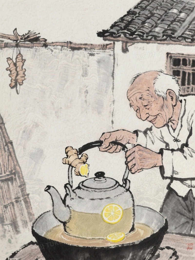 本作品内容为水墨风格老人将生姜和柠檬片放入茶壶中煮茶, 格式为 jpg, 大小1 MB, 图片尺寸为1104 x 1472, 源文件无水印, 欢迎使用熊猫办公。 如认为平台内容涉嫌侵权,可通过邮件:tousu@tukuppt.com提出书面通知,我们将及时处理。