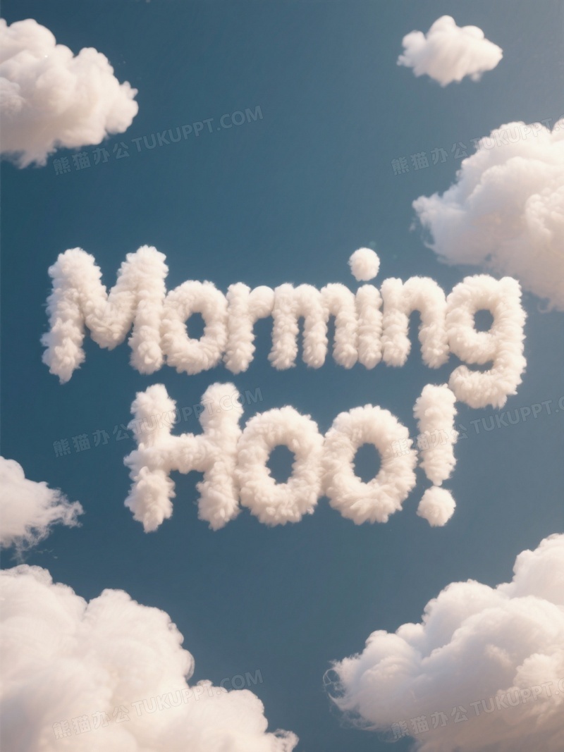 本作品内容为用云朵材质的艺术字写出早上好, 格式为 jpg, 大小1 MB, 图片尺寸为1104 x 1472, 源文件无水印, 欢迎使用熊猫办公。 如认为平台内容涉嫌侵权,可通过邮件:tousu@tukuppt.com提出书面通知,我们将及时处理。