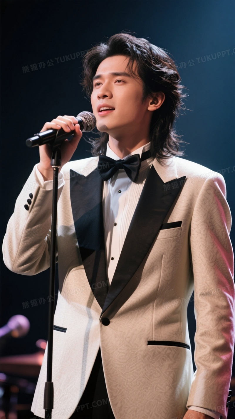 本作品内容为一位穿着礼服打着领结的25岁中国男子在舞台上深情地唱着情歌, 格式为 jpg, 大小1 MB, 图片尺寸为936 x 1664, 源文件无水印, 欢迎使用熊猫办公。 如认为平台内容涉嫌侵权,可通过邮件:tousu@tukuppt.com提出书面通知,我们将及时处理。