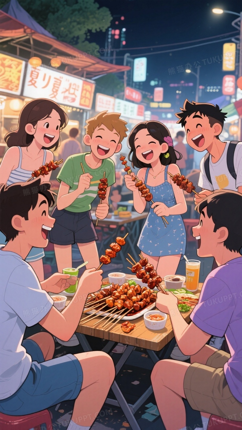 本作品内容为身着短袖短裤短裙连衣裙等凉爽夏季服装的青年男女朋友聚在一起撸串并开怀大笑, 格式为 jpg, 大小1 MB, 图片尺寸为936 x 1664, 源文件无水印, 欢迎使用熊猫办公。 如认为平台内容涉嫌侵权,可通过邮件:tousu@tukuppt.com提出书面通知,我们将及时处理。