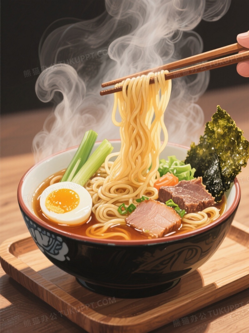 本作品内容为这幅画描绘了一碗美味的拉面, 格式为 jpg, 大小1 MB, 图片尺寸为1104 x 1472, 源文件无水印, 欢迎使用熊猫办公。 如认为平台内容涉嫌侵权,可通过邮件:tousu@tukuppt.com提出书面通知,我们将及时处理。