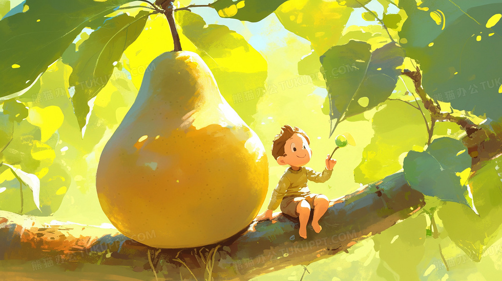 本作品内容为绿色新鲜水果雪梨与卡通男孩插画, 格式为 jpg, 大小3 MB, 图片尺寸为2912 x 1632, 源文件无水印, 欢迎使用熊猫办公。 如认为平台内容涉嫌侵权,可通过邮件:tousu@tukuppt.com提出书面通知,我们将及时处理。