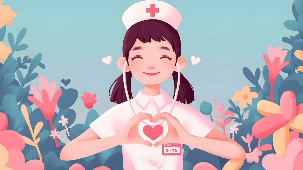 本作品内容为卡通漫画护士比心插画, 格式为 jpg, 大小2 MB, 图片尺寸为2912 x 1632, 源文件无水印, 欢迎使用熊猫办公。 如认为平台内容涉嫌侵权,可通过邮件:tousu@tukuppt.com提出书面通知,我们将及时处理。