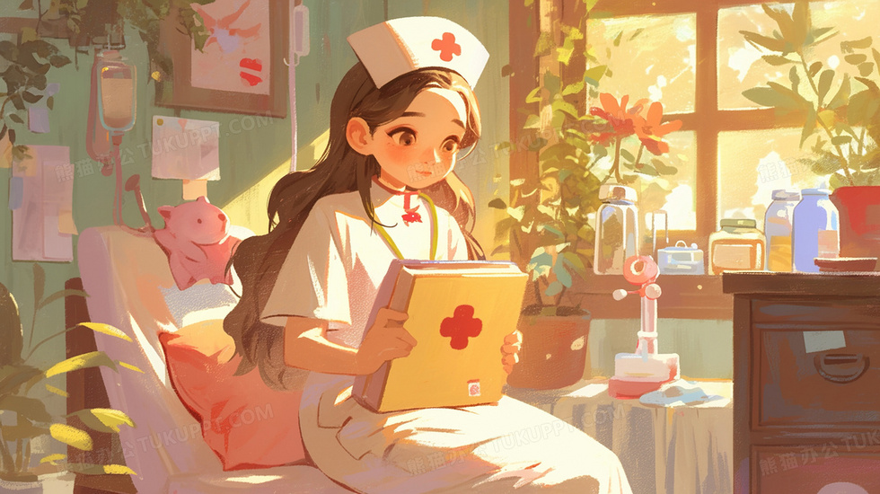 本作品内容为戴着听诊器工作中的女护士卡通插画, 格式为 jpg, 大小3 MB, 图片尺寸为2912 x 1632, 源文件无水印, 欢迎使用熊猫办公。 如认为平台内容涉嫌侵权,可通过邮件:tousu@tukuppt.com提出书面通知,我们将及时处理。