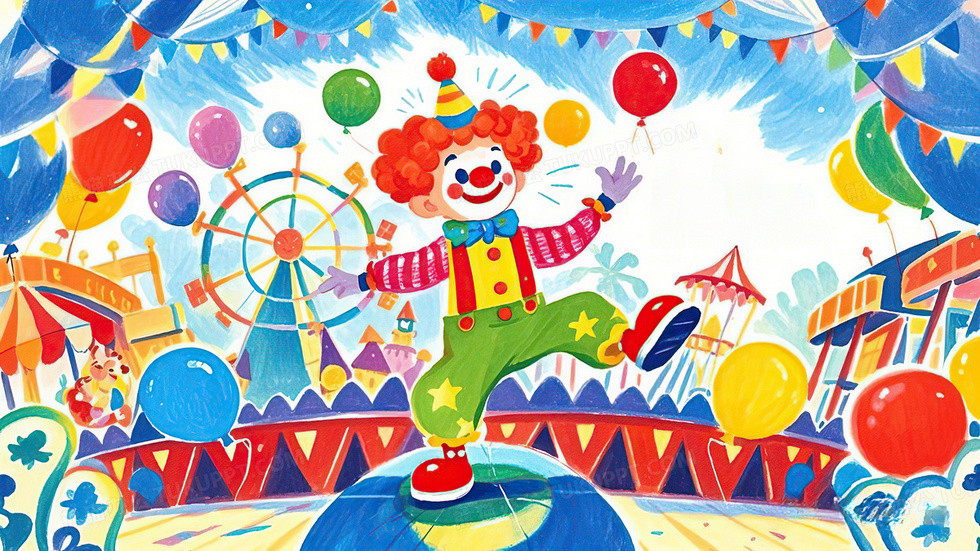 本作品内容为游乐园小丑表演玩杂技球节目愚人节插画, 格式为 jpg, 大小9 MB, 图片尺寸为3072 x 1728, 源文件无水印, 欢迎使用熊猫办公。 如认为平台内容涉嫌侵权,可通过邮件:tousu@tukuppt.com提出书面通知,我们将及时处理。