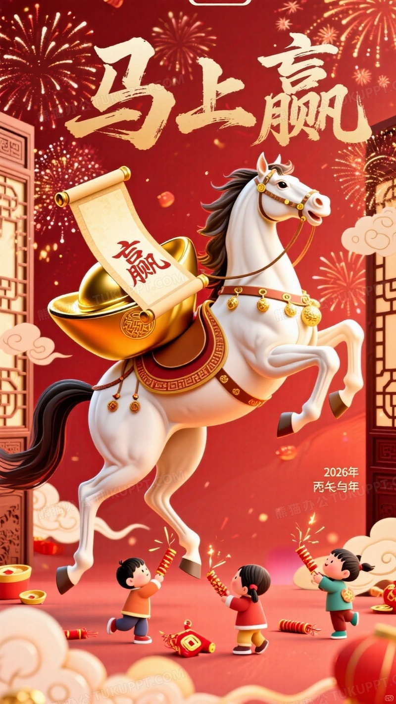 本作品内容为马年新年海报主题马上赢, 格式为 jpg, 大小1 MB, 图片尺寸为936 x 1664, 作品中背景图片无需修改, 源文件无水印,可以直接使用, 欢迎使用熊猫办公。 如认为平台内容涉嫌侵权,可通过邮件:tousu@tukuppt.com提出书面通知,我们将及时处理。