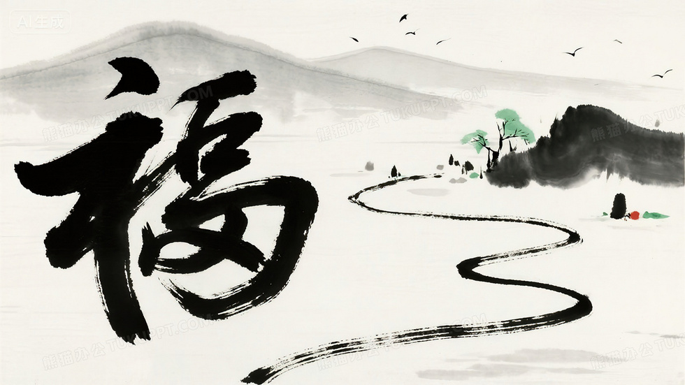本作品内容为水墨毛笔字福大气插画, 格式为 jpg, 大小4 MB, 图片尺寸为3328 x 1872, 源文件无水印, 欢迎使用熊猫办公。 如认为平台内容涉嫌侵权,可通过邮件:tousu@tukuppt.com提出书面通知,我们将及时处理。