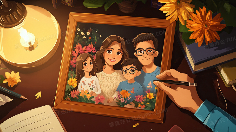 本作品内容为一家人合照拍照片拍摄人物插画, 格式为 jpg, 大小3 MB, 图片尺寸为2912 x 1632, 源文件无水印, 欢迎使用熊猫办公。 如认为平台内容涉嫌侵权,可通过邮件:tousu@tukuppt.com提出书面通知,我们将及时处理。