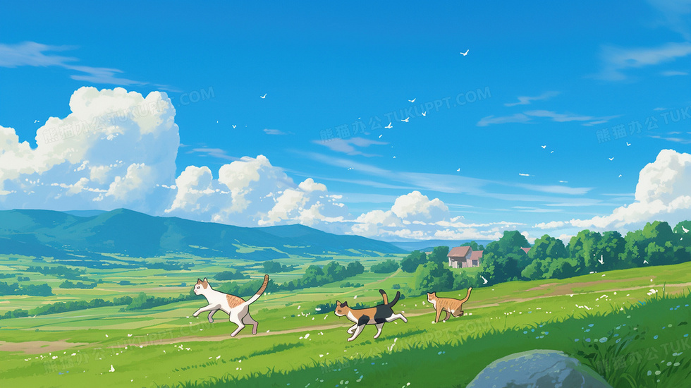 本作品内容为小猫草地可爱小动物卡通插画, 格式为 jpg, 大小3 MB, 图片尺寸为2912 x 1632, 源文件无水印, 欢迎使用熊猫办公。 如认为平台内容涉嫌侵权,可通过邮件:tousu@tukuppt.com提出书面通知,我们将及时处理。