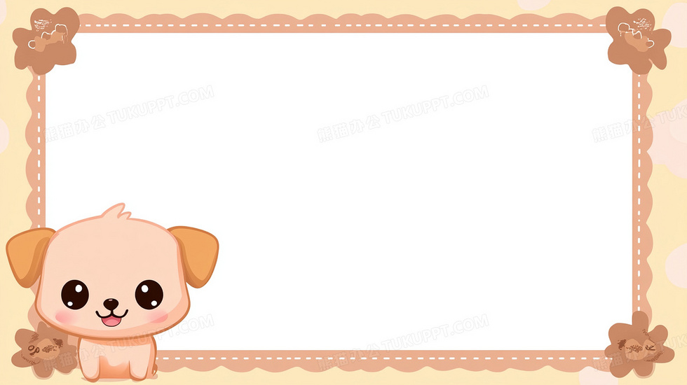 本作品内容为小狗简约边框白色边框背景, 格式为 jpg, 大小1 MB, 图片尺寸为2912 x 1632, 作品中背景图片无需修改, 源文件无水印,可以直接使用, 欢迎使用熊猫办公。 如认为平台内容涉嫌侵权,可通过邮件:tousu@tukuppt.com提出书面通知,我们将及时处理。
