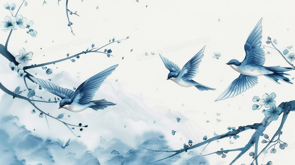本作品内容为中国风水墨蓝白喜鹊树枝插画, 格式为 jpg, 大小3 MB, 图片尺寸为2912 x 1632, 源文件无水印, 欢迎使用熊猫办公。 如认为平台内容涉嫌侵权,可通过邮件:tousu@tukuppt.com提出书面通知,我们将及时处理。