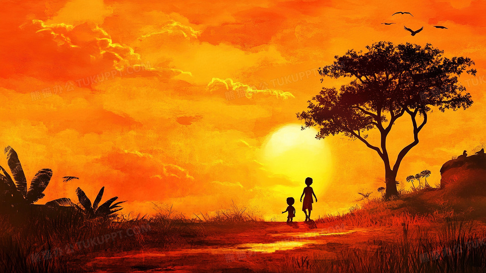 本作品内容为日出日落剪影风姐弟牵手步行插画, 格式为 jpg, 大小4 MB, 图片尺寸为2912 x 1632, 源文件无水印, 欢迎使用熊猫办公。 如认为平台内容涉嫌侵权,可通过邮件:tousu@tukuppt.com提出书面通知,我们将及时处理。