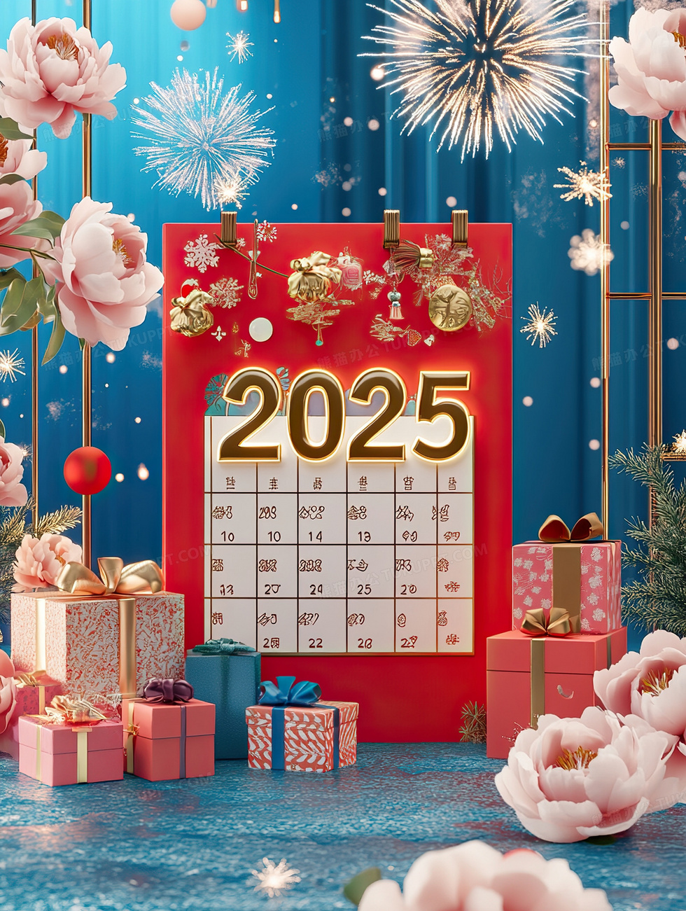 本作品内容为2025新年元旦台历插画, 格式为 jpg, 大小4 MB, 图片尺寸为1856 x 2464, 源文件无水印, 欢迎使用熊猫办公。 如认为平台内容涉嫌侵权,可通过邮件:tousu@tukuppt.com提出书面通知,我们将及时处理。