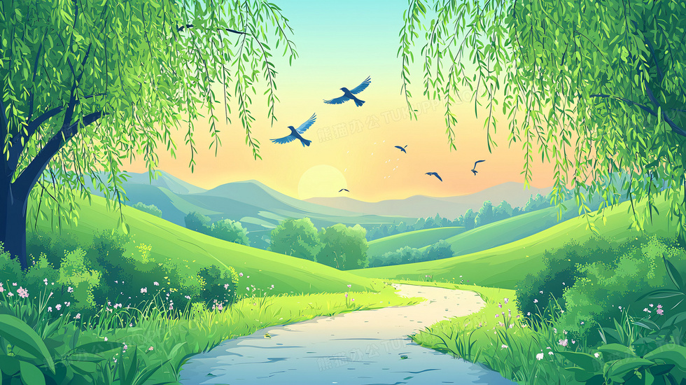 本作品内容为春天柳树燕子美丽风景插画, 格式为 jpg, 大小7 MB, 图片尺寸为2912 x 1632, 源文件无水印, 欢迎使用熊猫办公。 如认为平台内容涉嫌侵权,可通过邮件:tousu@tukuppt.com提出书面通知,我们将及时处理。