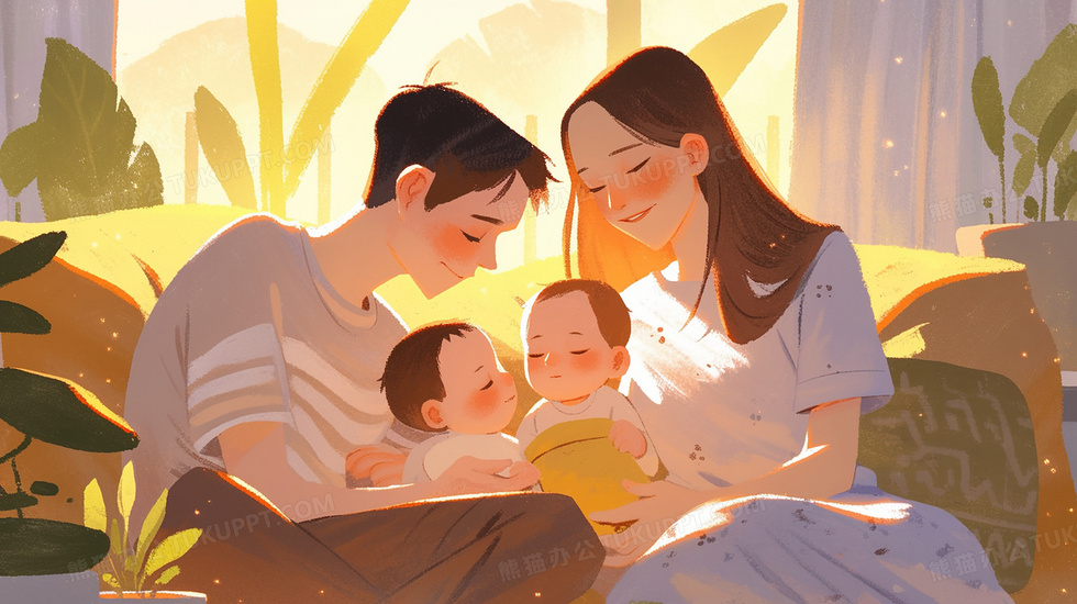 本作品内容为爸爸妈妈抱着孩子一家四口温馨插画, 格式为 jpg, 大小3 MB, 图片尺寸为2912 x 1632, 源文件无水印, 欢迎使用熊猫办公。 如认为平台内容涉嫌侵权,可通过邮件:tousu@tukuppt.com提出书面通知,我们将及时处理。