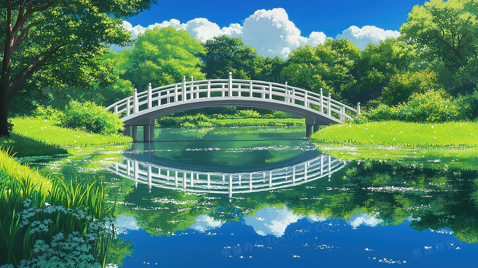 本作品内容为春季户外公园湖面上一座小桥插画, 格式为 jpg, 大小5 MB, 图片尺寸为2912 x 1632, 源文件无水印, 欢迎使用熊猫办公。 如认为平台内容涉嫌侵权,可通过邮件:tousu@tukuppt.com提出书面通知,我们将及时处理。