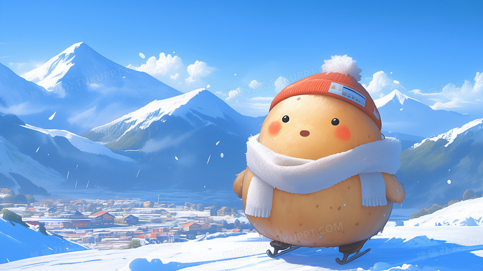 本作品内容为一个小土豆在雪坡上滑雪手绘插画, 格式为 jpg, 大小6 MB, 图片尺寸为2912 x 1632, 源文件无水印, 欢迎使用熊猫办公。 如认为平台内容涉嫌侵权,可通过邮件:tousu@tukuppt.com提出书面通知,我们将及时处理。