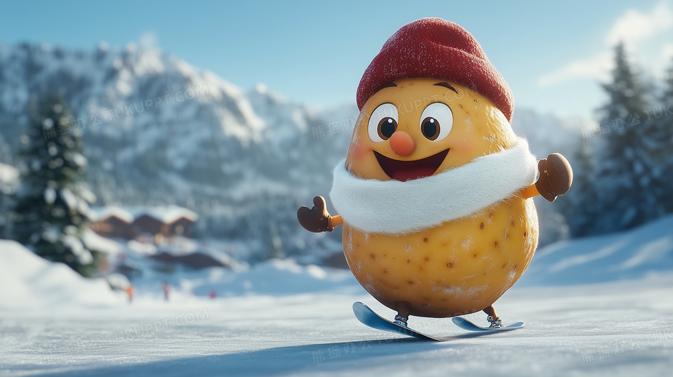 本作品内容为一个小土豆在滑冰三维插画, 格式为 jpg, 大小7 MB, 图片尺寸为2912 x 1632, 源文件无水印, 欢迎使用熊猫办公。 如认为平台内容涉嫌侵权,可通过邮件:tousu@tukuppt.com提出书面通知,我们将及时处理。