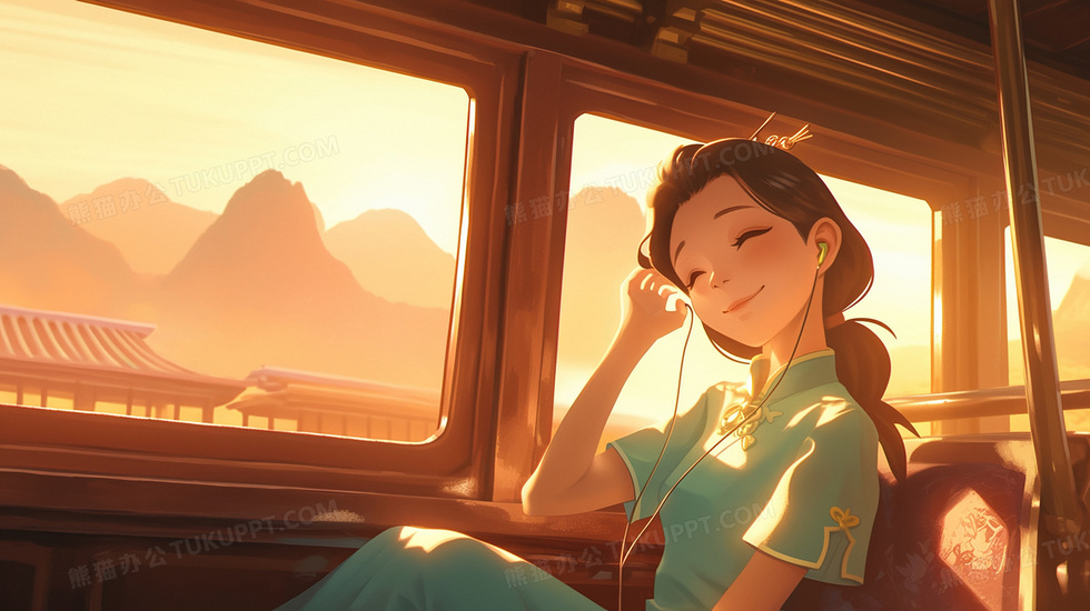 本作品内容为坐在列车里戴着耳机听音乐民国女孩插画, 格式为 jpg, 大小2 MB, 图片尺寸为2912 x 1632, 源文件无水印, 欢迎使用熊猫办公。 如认为平台内容涉嫌侵权,可通过邮件:tousu@tukuppt.com提出书面通知,我们将及时处理。