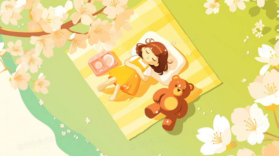 本作品内容为野外踏青躺在野餐垫睡觉女孩与动物棕熊插画, 格式为 jpg, 大小2 MB, 图片尺寸为2912 x 1632, 源文件无水印, 欢迎使用熊猫办公。 如认为平台内容涉嫌侵权,可通过邮件:tousu@tukuppt.com提出书面通知,我们将及时处理。