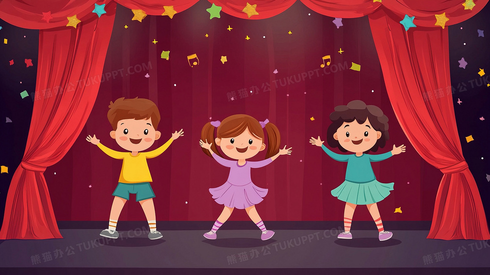 本作品内容为小孩唱歌舞蹈舞台表演演出插画, 格式为 jpg, 大小2 MB, 图片尺寸为2912 x 1632, 源文件无水印, 欢迎使用熊猫办公。 如认为平台内容涉嫌侵权,可通过邮件:tousu@tukuppt.com提出书面通知,我们将及时处理。