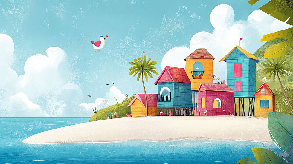 本作品内容为海岛风景度假插画, 格式为 jpg, 大小1 MB, 图片尺寸为2912 x 1632, 源文件无水印, 欢迎使用熊猫办公。 如认为平台内容涉嫌侵权,可通过邮件:tousu@tukuppt.com提出书面通知,我们将及时处理。