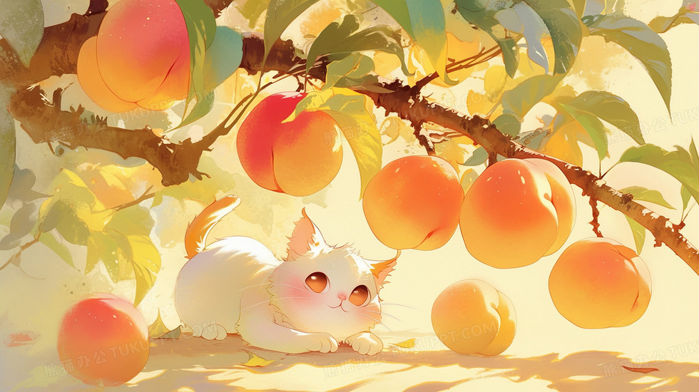 本作品内容为桃树上硕果累累的水果桃子和宠物猫插画, 格式为 jpg, 大小3 MB, 图片尺寸为2912 x 1632, 源文件无水印, 欢迎使用熊猫办公。 如认为平台内容涉嫌侵权,可通过邮件:tousu@tukuppt.com提出书面通知,我们将及时处理。