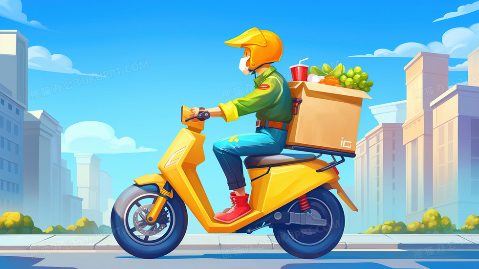 本作品内容为五一劳动节骑电驴送外卖快递员小哥插画, 格式为 jpg, 大小2 MB, 图片尺寸为2912 x 1632, 源文件无水印, 欢迎使用熊猫办公。 如认为平台内容涉嫌侵权,可通过邮件:tousu@tukuppt.com提出书面通知,我们将及时处理。