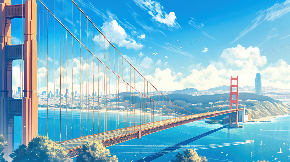 本作品内容为跨海大桥海边风景蓝天白云插画, 格式为 jpg, 大小3 MB, 图片尺寸为2912 x 1632, 源文件无水印, 欢迎使用熊猫办公。 如认为平台内容涉嫌侵权,可通过邮件:tousu@tukuppt.com提出书面通知,我们将及时处理。