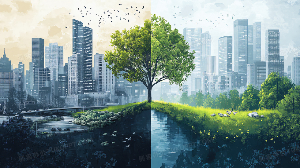 本作品内容为植树节城市绿化环保对比插画, 格式为 jpg, 大小8 MB, 图片尺寸为2912 x 1632, 源文件无水印, 欢迎使用熊猫办公。 如认为平台内容涉嫌侵权,可通过邮件:tousu@tukuppt.com提出书面通知,我们将及时处理。