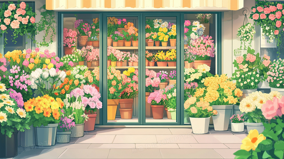 本作品内容为花店门口环境插画, 格式为 jpg, 大小4 MB, 图片尺寸为2912 x 1632, 源文件无水印, 欢迎使用熊猫办公。 如认为平台内容涉嫌侵权,可通过邮件:tousu@tukuppt.com提出书面通知,我们将及时处理。