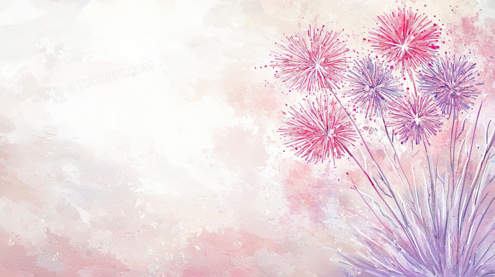 本作品内容为紫色简约烟花背景图, 格式为 jpg, 大小3 MB, 图片尺寸为2912 x 1632, 作品中背景图片无需修改, 源文件无水印,可以直接使用, 欢迎使用熊猫办公。 如认为平台内容涉嫌侵权,可通过邮件:tousu@tukuppt.com提出书面通知,我们将及时处理。