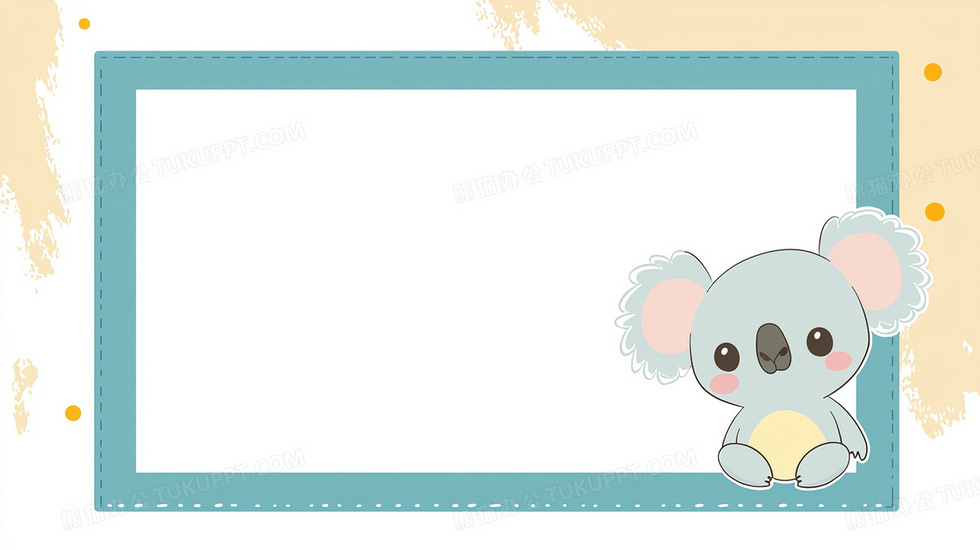 本作品内容为卡通可爱考拉装饰边框背景, 格式为 jpg, 大小1 MB, 图片尺寸为2912 x 1632, 作品中背景图片无需修改, 源文件无水印,可以直接使用, 欢迎使用熊猫办公。 如认为平台内容涉嫌侵权,可通过邮件:tousu@tukuppt.com提出书面通知,我们将及时处理。