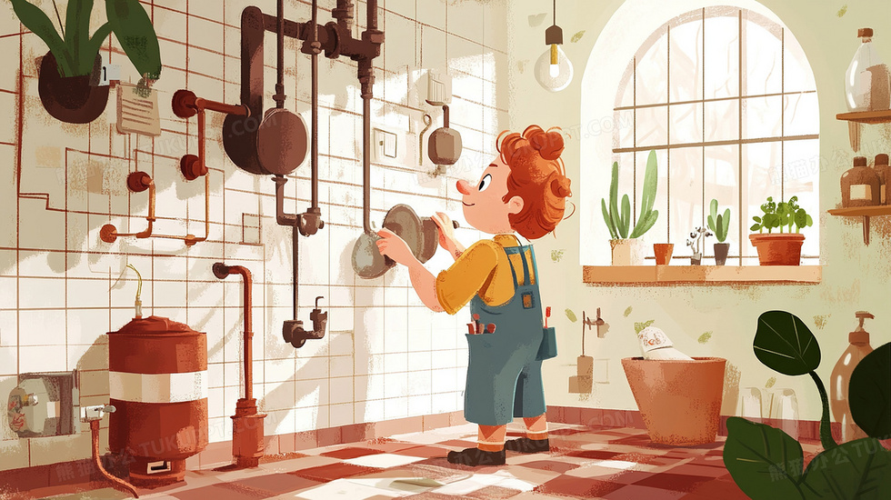 本作品内容为室内水电工人维修水管插画, 格式为 jpg, 大小3 MB, 图片尺寸为2912 x 1632, 源文件无水印, 欢迎使用熊猫办公。 如认为平台内容涉嫌侵权,可通过邮件:tousu@tukuppt.com提出书面通知,我们将及时处理。