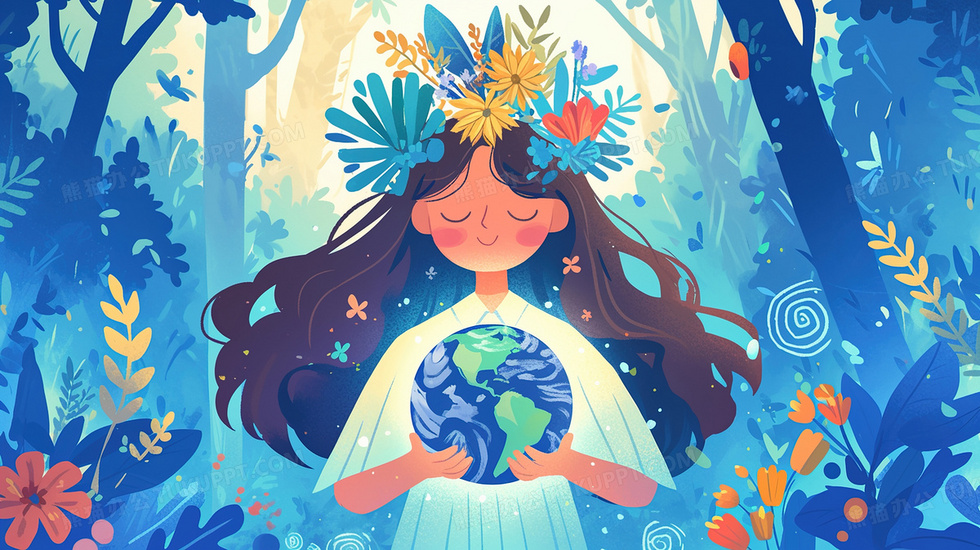 首页 > 插画 > 科技艺术 > 卡通漫画 > 头戴花环卡通女孩手捧地球大自然环保插画