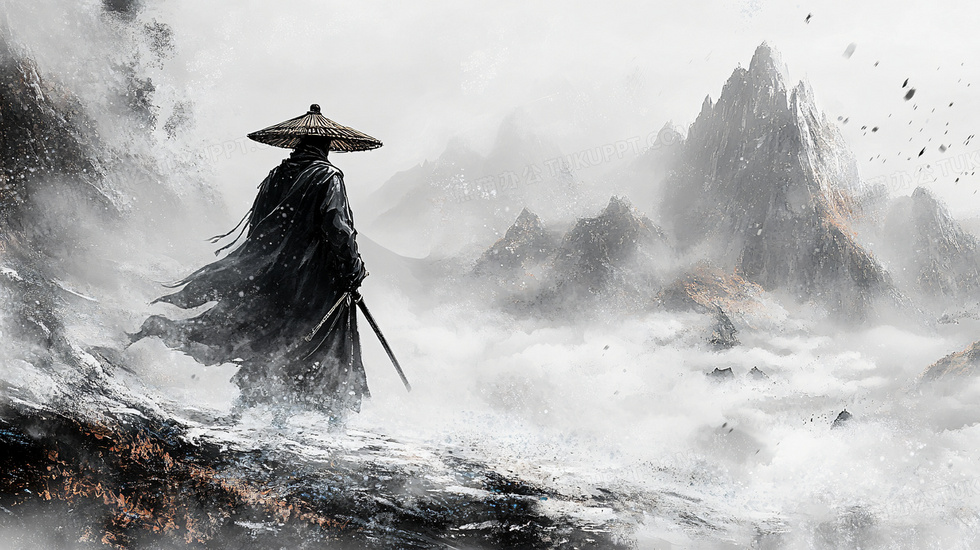 本作品内容为古风山水画剑客插图, 格式为 jpg, 大小7 MB, 图片尺寸为2912 x 1632, 源文件无水印, 欢迎使用熊猫办公。 如认为平台内容涉嫌侵权,可通过邮件:tousu@tukuppt.com提出书面通知,我们将及时处理。