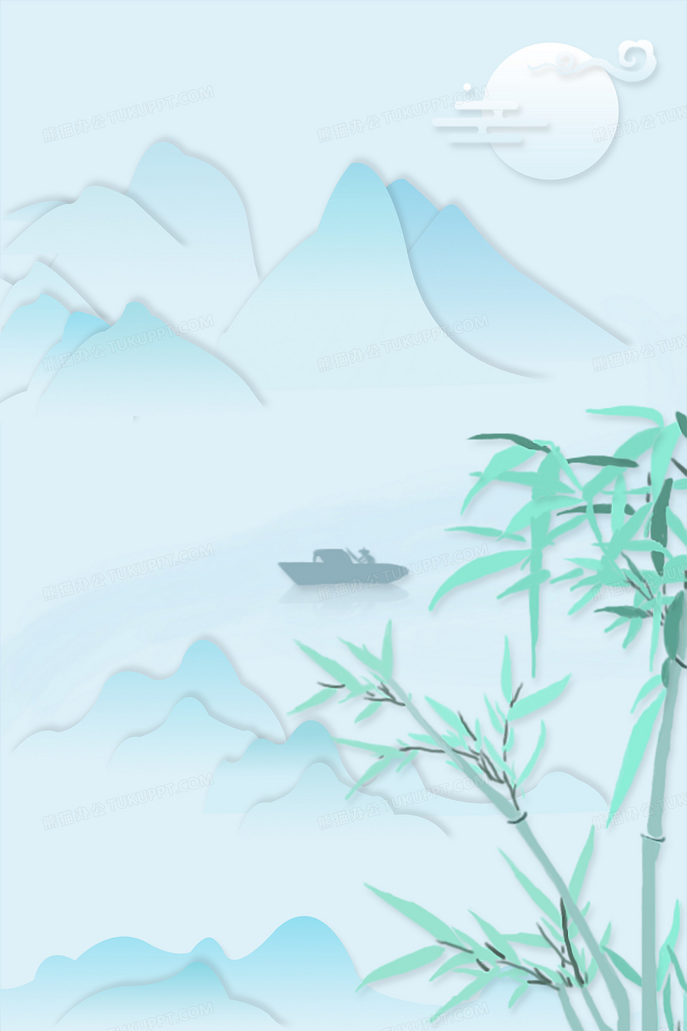 本作品内容为蓝绿色简约大气剪纸风山水翠竹背景模板, 格式为 psd, 大小46 MB, 图片尺寸为7087 x 10630, 作品中背景图片无需修改, 源文件无水印,可以直接使用, 欢迎使用熊猫办公。 如认为平台内容涉嫌侵权,可通过邮件:tousu@tukuppt.com提出书面通知,我们将及时处理。