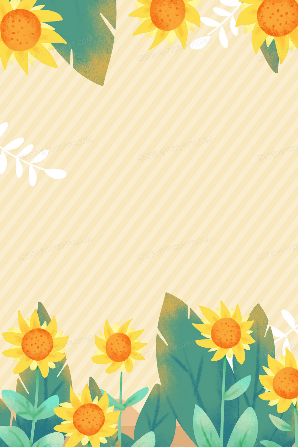 本作品内容为插画小清新向日葵卡通背景, 格式为 psd, 大小45 MB, 图片尺寸为3543 x 5315, 作品中背景图片无需修改, 源文件无水印,可以直接使用, 欢迎使用熊猫办公。 如认为平台内容涉嫌侵权,可通过邮件:tousu@tukuppt.com提出书面通知,我们将及时处理。