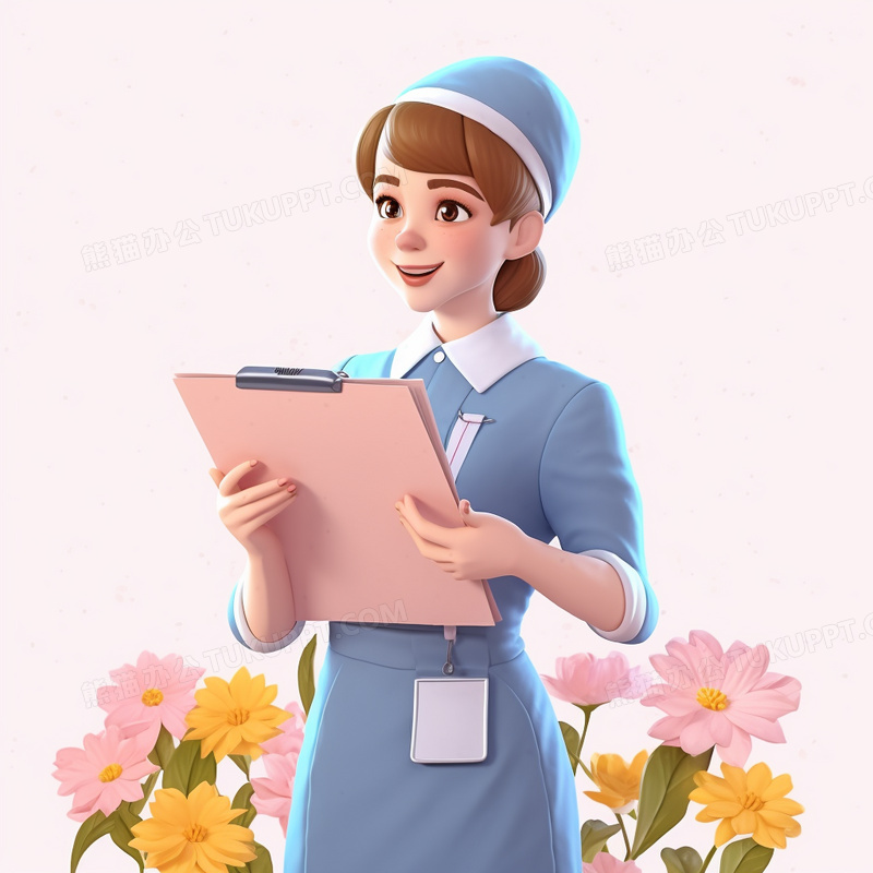 本作品内容为穿着蓝色制服的护士拿着病历本面带笑容3D模型插画, 格式为 jpg, 大小1 MB, 图片尺寸为1024 x 1024, 源文件无水印, 欢迎使用熊猫办公。 如认为平台内容涉嫌侵权,可通过邮件:tousu@tukuppt.com提出书面通知,我们将及时处理。