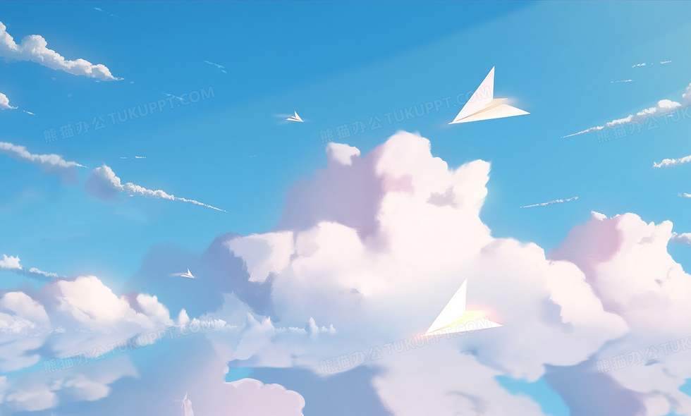 本作品内容为唯美梦幻蓝天白云纸飞机, 格式为 jpg, 大小2 MB, 图片尺寸为2688 x 1618, 源文件无水印, 欢迎使用熊猫办公。 如认为平台内容涉嫌侵权,可通过邮件:tousu@tukuppt.com提出书面通知,我们将及时处理。