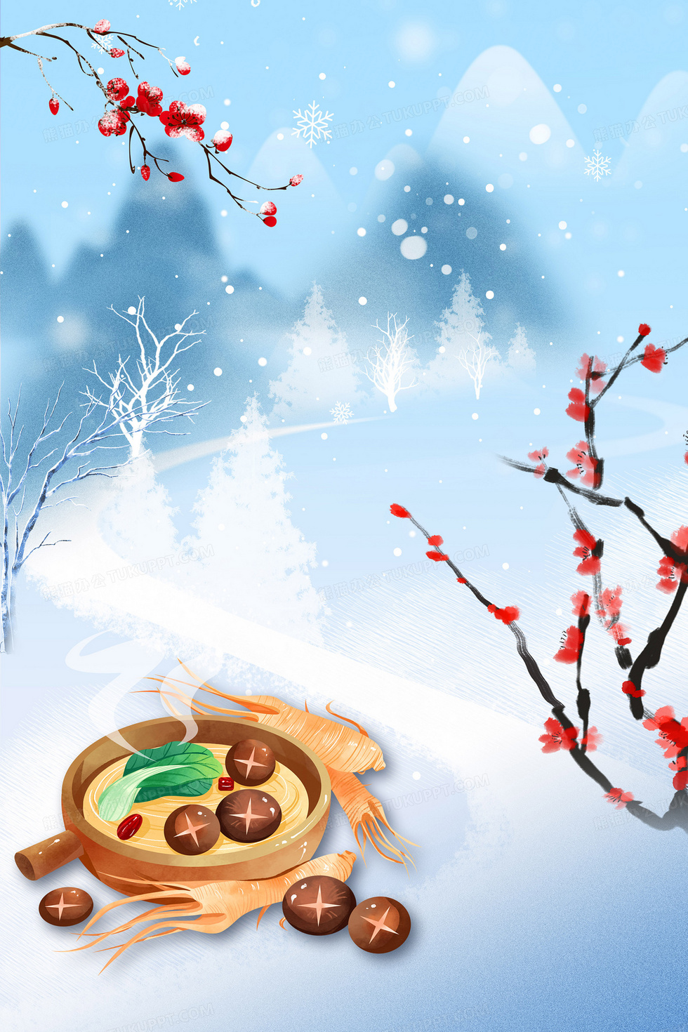 本作品内容为二十四节气之立冬寒雪进补人参菌菇背景, 格式为 psd, 大小81 MB, 图片尺寸为3543 x 5314, 作品中背景图片无需修改, 源文件无水印,可以直接使用, 欢迎使用熊猫办公。 如认为平台内容涉嫌侵权,可通过邮件:tousu@tukuppt.com提出书面通知,我们将及时处理。