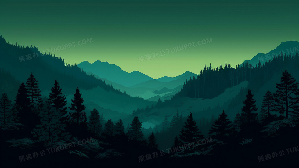 本作品内容为暗绿色极简风夜晚森林创意插画, 格式为 jpg, 大小2 MB, 图片尺寸为2912 x 1632, 源文件无水印, 欢迎使用熊猫办公。 如认为平台内容涉嫌侵权,可通过邮件:tousu@tukuppt.com提出书面通知,我们将及时处理。