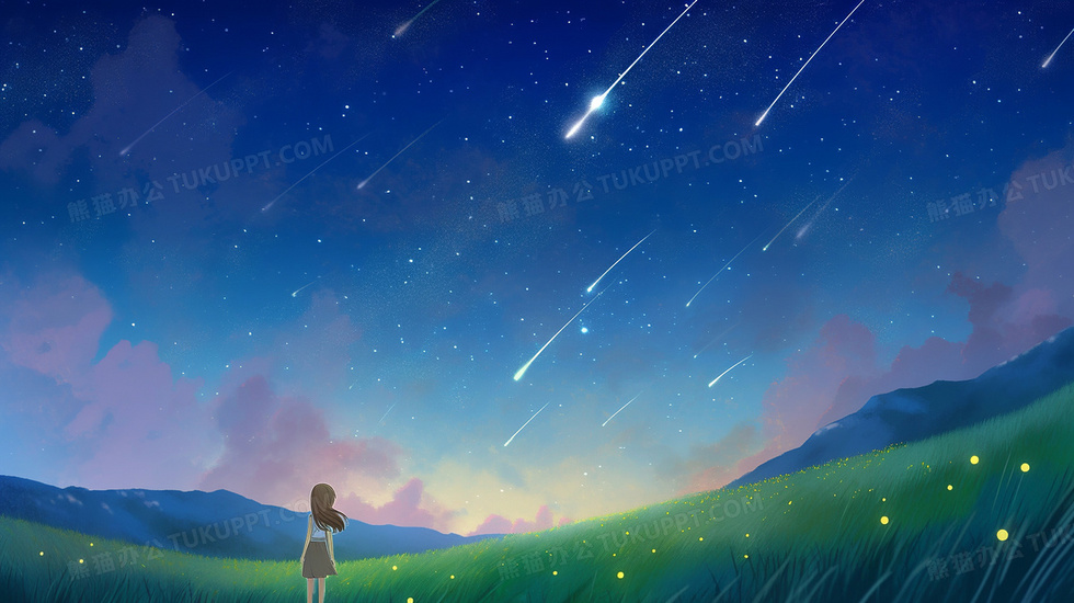 本作品内容为看流星的小女孩唯美插画, 格式为 jpg, 大小3 MB, 图片尺寸为2912 x 1632, 源文件无水印, 欢迎使用熊猫办公。 如认为平台内容涉嫌侵权,可通过邮件:tousu@tukuppt.com提出书面通知,我们将及时处理。