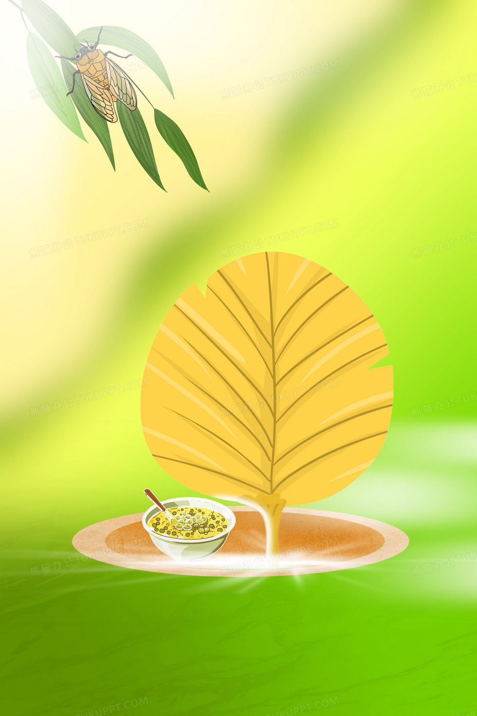 本作品内容为扇子绿豆沙合成背景, 格式为 psd, 大小23 MB, 图片尺寸为3543 x 5314, 作品中背景图片无需修改, 源文件无水印,可以直接使用, 欢迎使用熊猫办公。 如认为平台内容涉嫌侵权,可通过邮件:tousu@tukuppt.com提出书面通知,我们将及时处理。