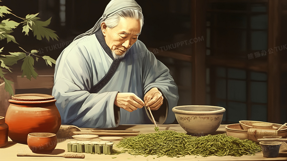 本作品内容为制作药材的古时老人人物插画, 格式为 jpg, 大小6 MB, 图片尺寸为2912 x 1632, 源文件无水印, 欢迎使用熊猫办公。 如认为平台内容涉嫌侵权,可通过邮件:tousu@tukuppt.com提出书面通知,我们将及时处理。